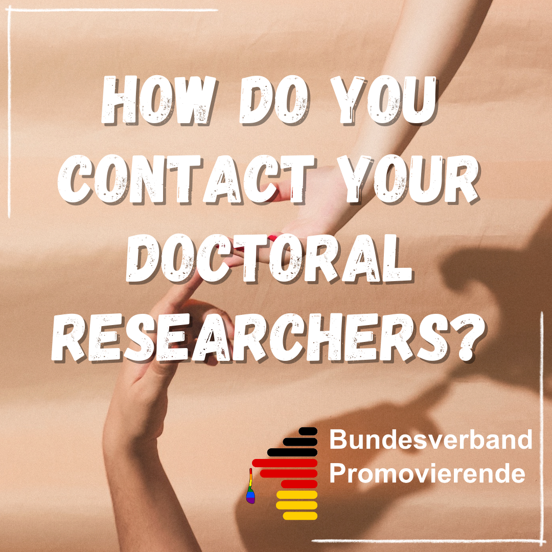 Many doctoral student representatives have email lists or social media accounts. However, it has become apparent time and again that it is not so easy to really reach doctoral students on site. We are a very diverse group of people and therefore cannot be reached through a single solution. In this blog, we would therefore like to present a few ideas and also invite you to share your good and bad experiences with contacting other doctoral students.